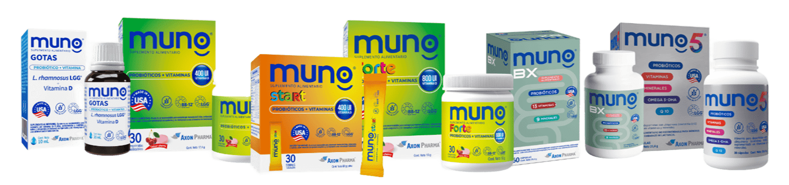 Muno ayuda a reforzar el sistema inmune de los que más quieres con sus probióticos y vitaminas en diferentes presentaciones.