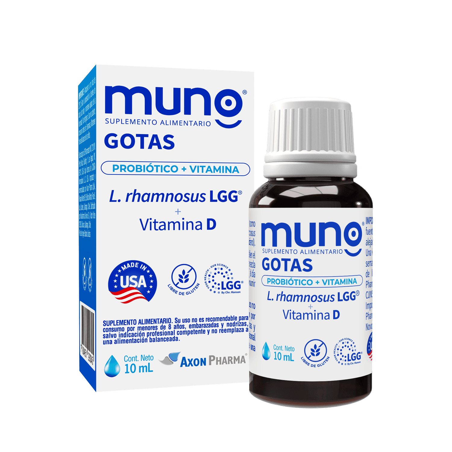 Nos preocupamos por la salud de tus pequeños tanto como tú. Muno Gotas ayuda a reforzar sus defensas con solo 6 gotas diarias gracias a una combinación de LGG ® y 400 UIvitamina D. Muno, la protección que quieres tú, con la libertad que quieren ellos.