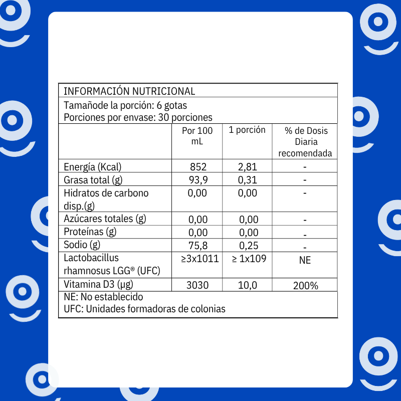 - Gracias a la combinación del probiótico (Lactobacillus rhamnosus GG ®) y la vitamina D, ayudando a reforzar su sistema inmunológico.